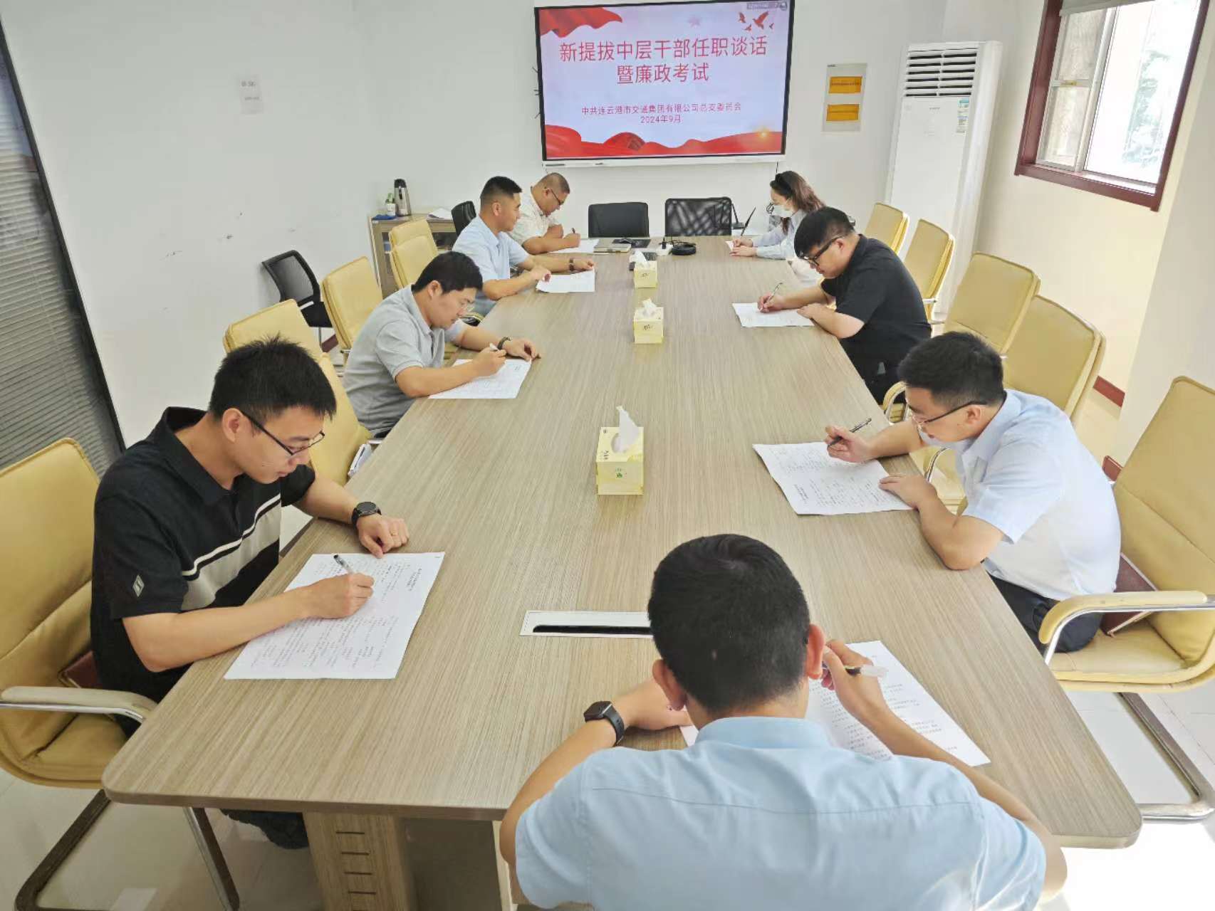 2024年9月26日,交通天博app最新版下载,天博(中国)开展新提拔中层干部任职谈话暨廉政考试。交通天博app最新版下载,天博(中国)党总支书记、总经理戴衡出席会议并讲话,交通天博app最新版下载,天博(中国)工会主席、纪检委员杨春主持会议,人力资源部及全体新任职中层干部参加会议。