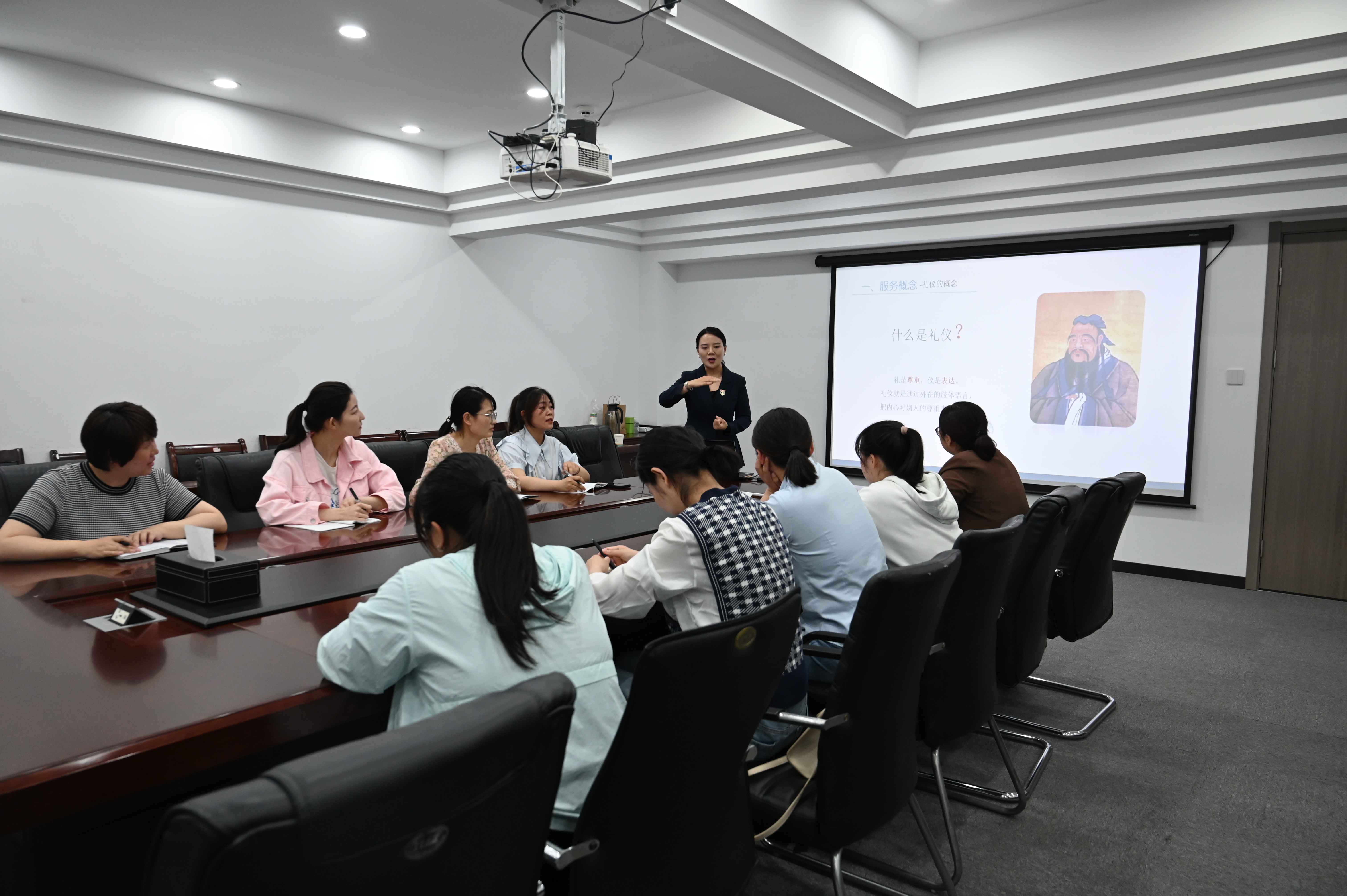 培训课上,高慧宇老师结合自己的实践经验,采取理论简述、案例教学及经验分享等方式,分别从“窗口服务规范”、“仪容仪表”、“服务用语”、“电话用语”等方面,多角度为大家详细讲解服务礼仪相关知识。 在提问环节,学员们各自提出了自己在工作过程中遇到的难题,高慧宇老师依次进行了耐心的解答。