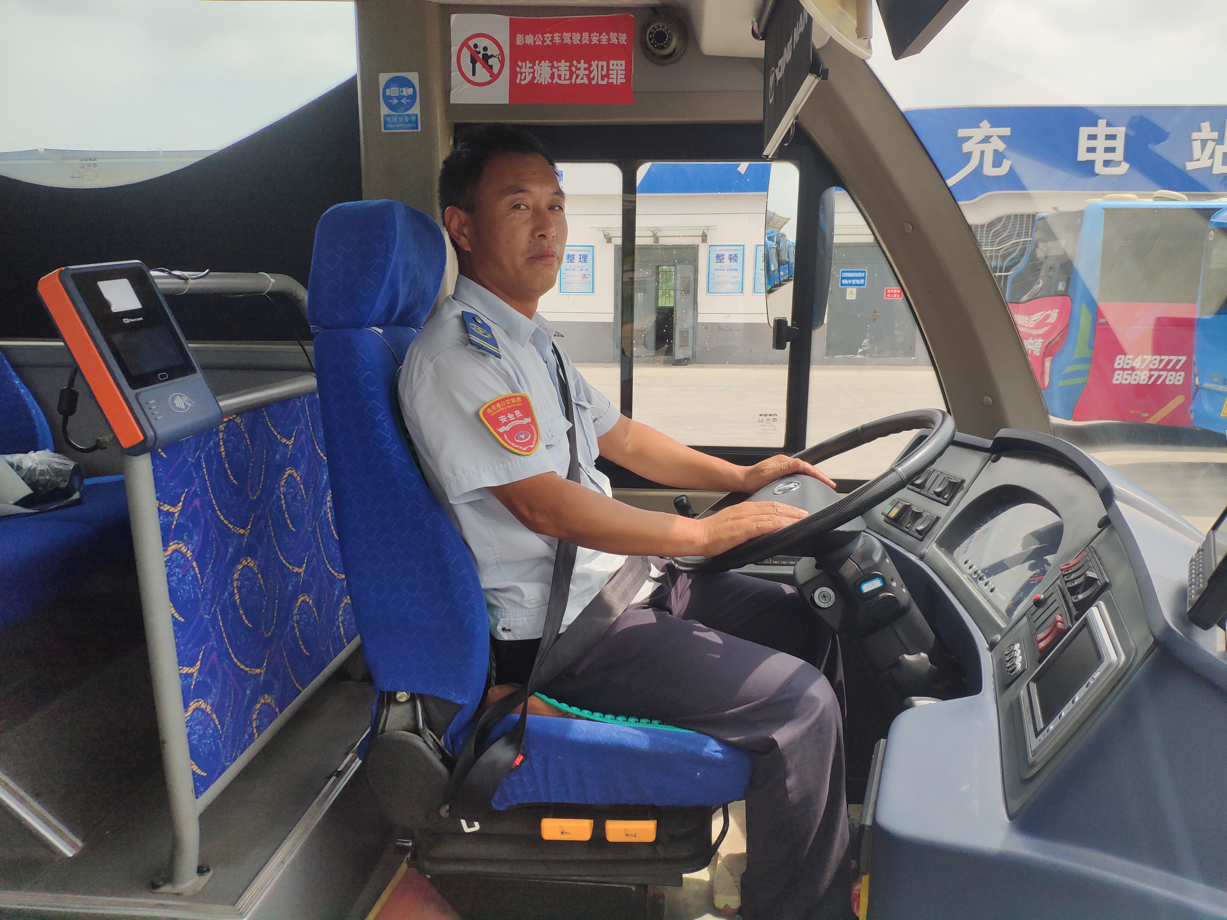 行车时,潘正山手握方向盘平稳地驾驶着车辆,眼睛仔细观察乘客的上车情况,热情耐心的提示乘客投币、刷卡、安全入座,十二年的军旅生涯让他养成了即使只有十分钟休息时间,也要把车子收拾的干干净净才开始新一轮的出车任务的习惯。