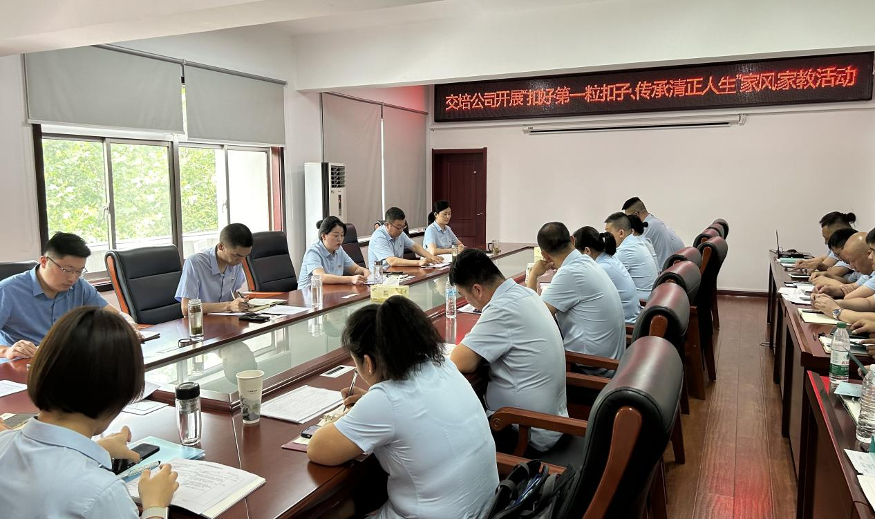 近日,交培公司开展“扣好‘第一粒扣子’、传承清正人生”家风家教活动。本次活动是为了引导公司年轻干部扣好廉洁从政的“第一粒扣子”,注重家庭家教家风,廉洁修身齐家,着力营造崇尚廉洁、抵制腐败的良好风气。公司领导班子及公司全体中层干部参加了活动。