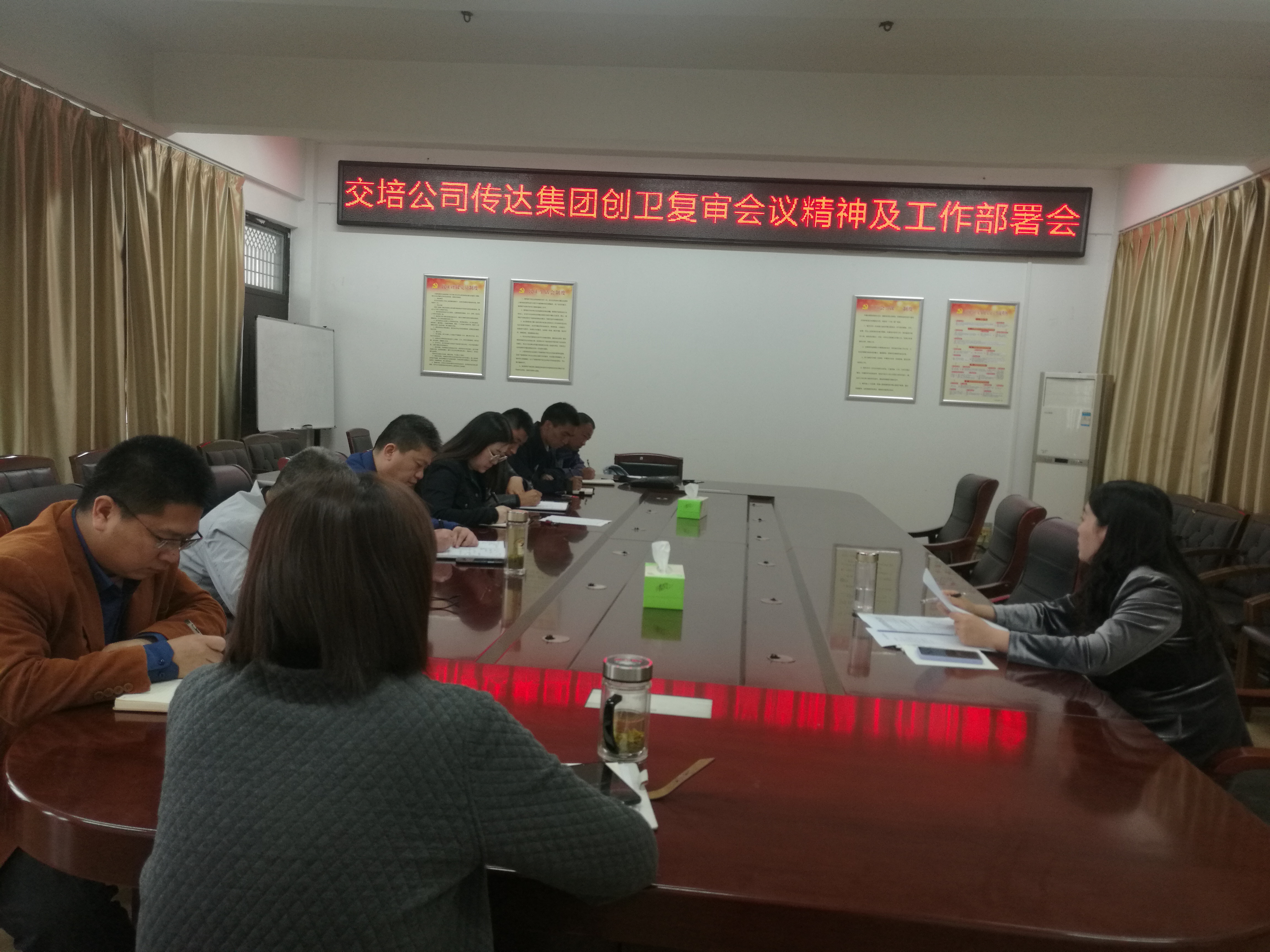 5月12日下午,交培公司召开传达天博app最新版下载,天博(中国)迎接国家卫生城市复审工作推进会,会议传达了天博app最新版下载,天博(中国)创卫复审工作推进会精神,公司领导、中层干部参加会议。
