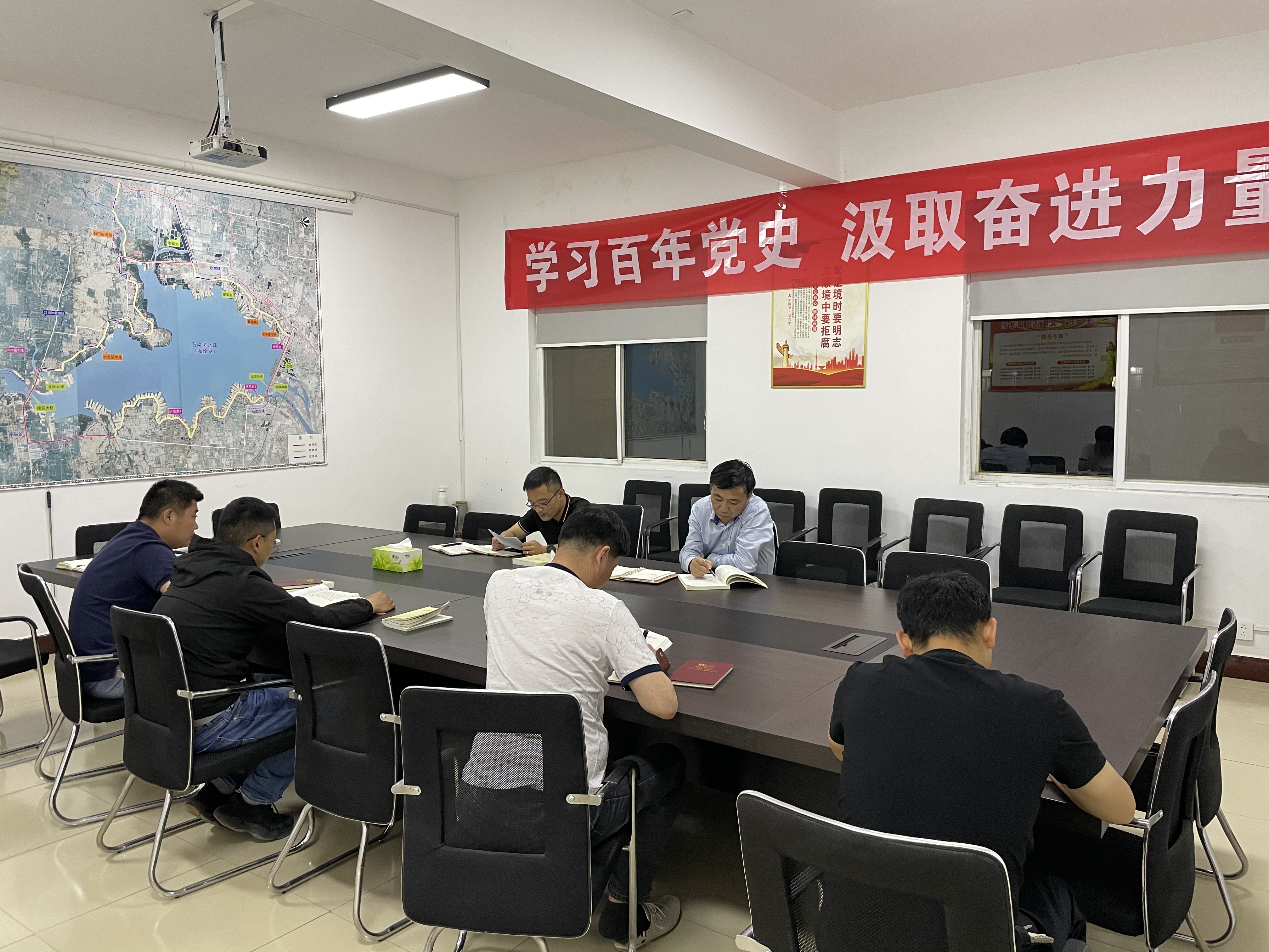 结合党小组学习与公司生产经营工作,会议要求:一是要加强党史学习、传承红色基因。全体党员干部要积极培养主动学习意识,将党史学习、独立思考、自查自省作为个人日常习惯,全面提升个人综合素养和团队学习氛围;二是要筑牢思想防线、永葆初心使命。要以会议通报的典型案件为鉴,警钟长鸣、防微杜渐,知敬畏、存戒惧、守底线,扎实筑牢拒腐防变的思想防线;三是要紧随党旗引领、凝聚团队合力。全体党员干部要将近阶段的所学、所思、所想转化为能干事、想干事的强大内生动力,进一步树立主动作为意识,互帮互助、团结一致,实现人力整合最优配置,推动公司采砂各项工作高质高效平稳开展。