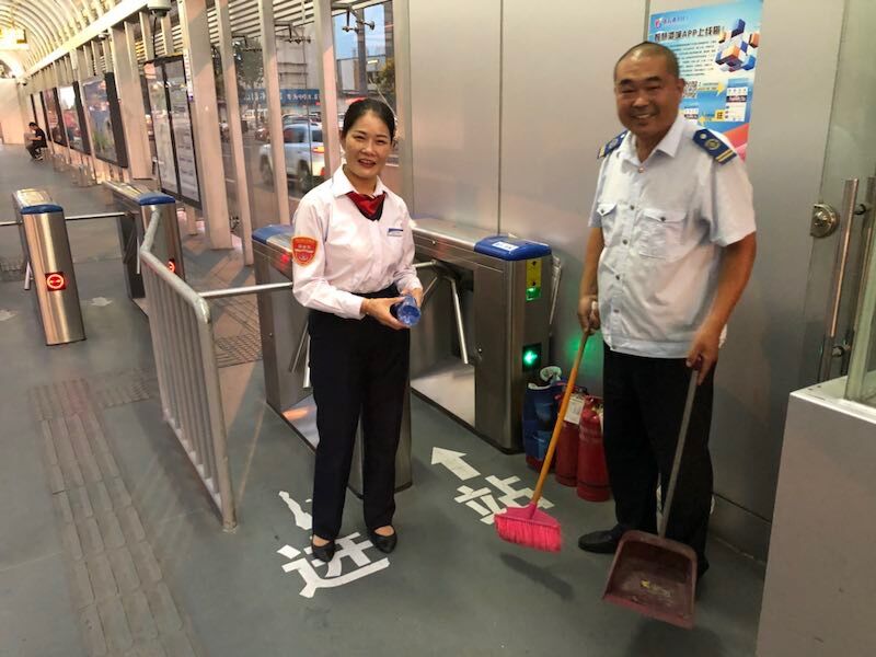 照片中憨厚老实的帅哥驾驶员是我们公交天博app最新版下载,天博(中国)快速公司西城分公司B1线的驾驶员姚伟,美女是我们公交天博app最新版下载,天博(中国)快速公司一号线工商银行站的站务员董淑艳。